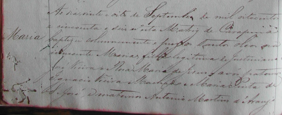 - Maria, batizada no dia 28/09/1856, na Matriz de Carapina-ES