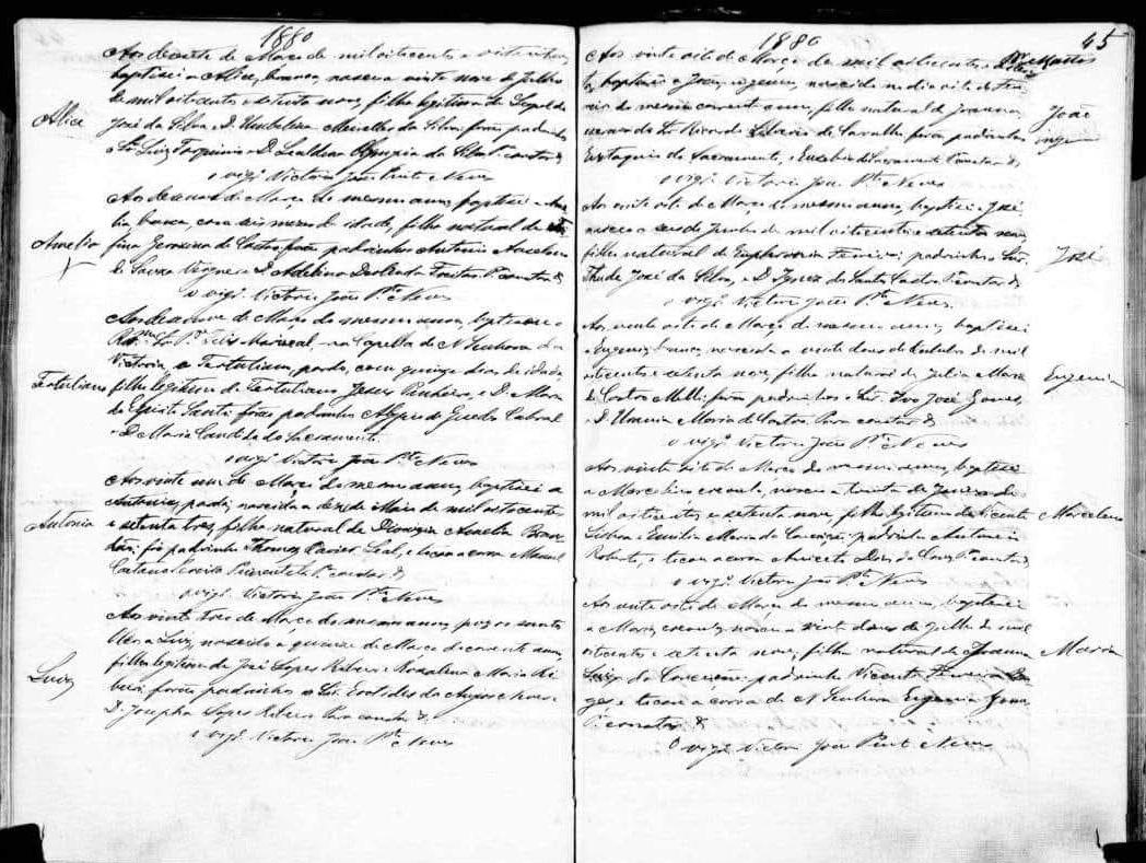 Registro de batismos de Luiz Armando Lopes Ribeiro, no dia 23/03/1880, nascido no dia 15/03/1880.