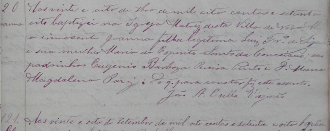 Pais: Reginaldo Francisco de Siqueira e Luiza Maria Hilaria