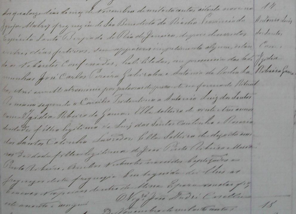 - Antonio Luiz dos Santos c.c. Igidia Ribeiro da Gama, filha de João Pinto Ribeiro e Maria Pinto Ribeiro
