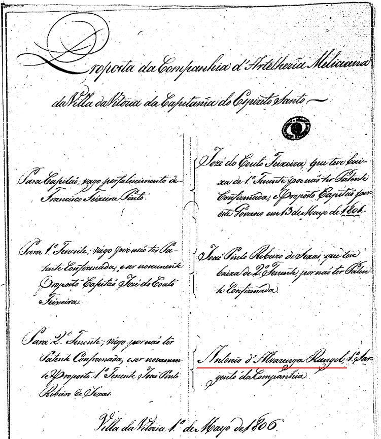 Em 1806 Antonio de Alvarenga Rangel era 1º Sargento