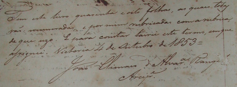 Observação no final do livro de batismo de Cariacica-ES - Cariacica BL02-08.1853-11.1856