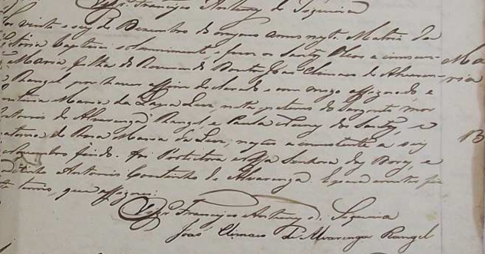 No dia 23/04/1833, o Major Antonio de Alvarenga Rangel e Dona Anna Maria da Penha, na Matriz de Vitória-ES, foram padrinhos de Ignacio,