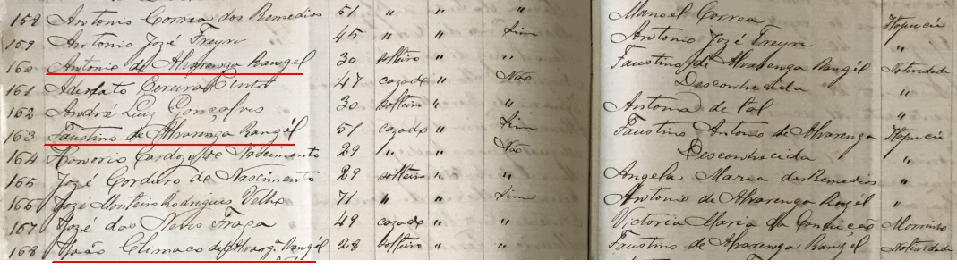 - Faustino Antonio de Alvarenga Rangel c.c. Domitila Maria da Conceição (Certamente: 2º casamento, quando Faustino deveria estar com 40 anos de idade)