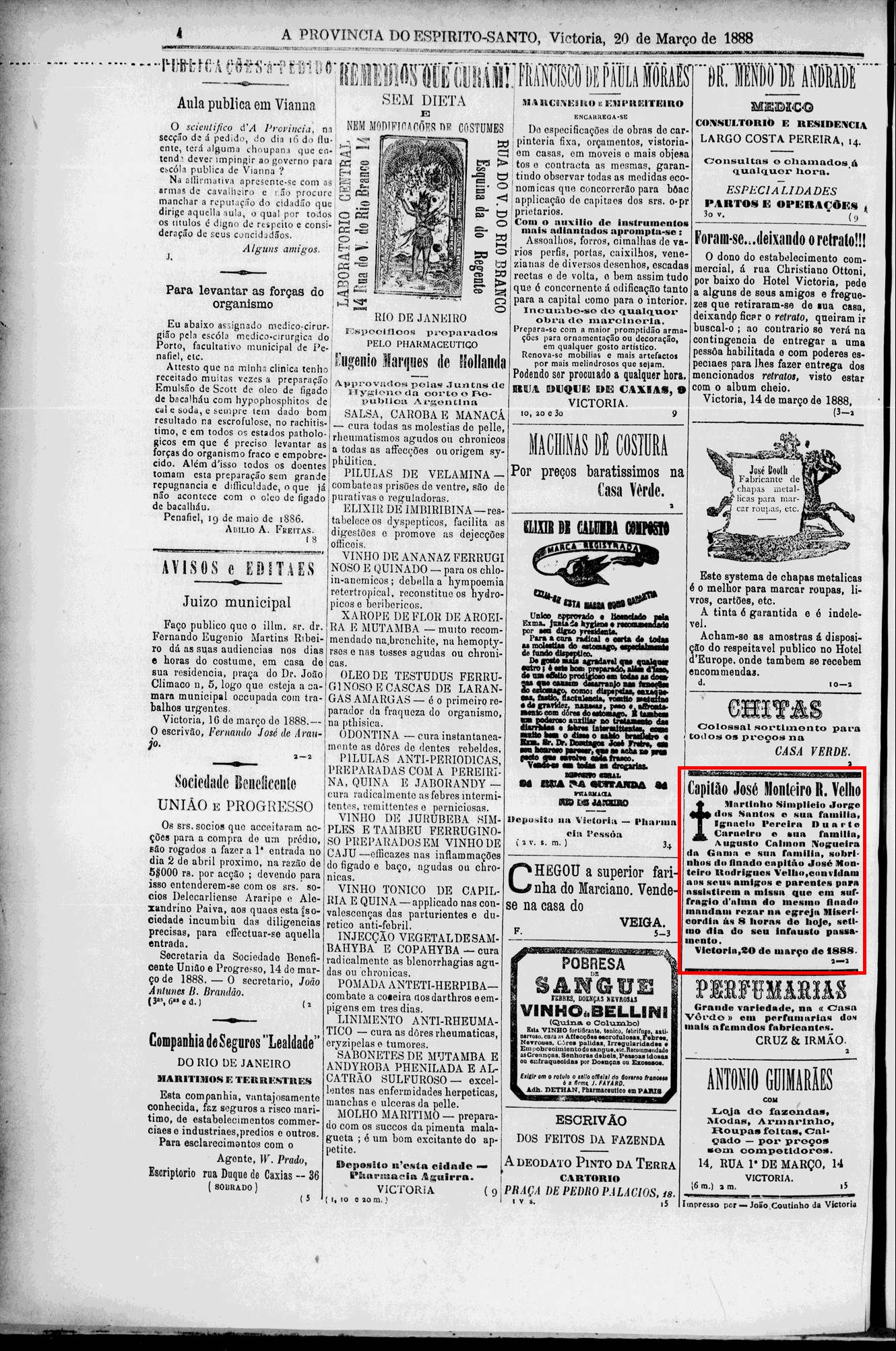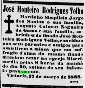 1888 - Falecimento de Jose Monteiro Rodrigues Velho