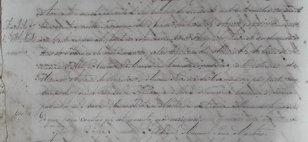 Padrinhos: Padre Manoiel Pires Martins e Felismina Maria de Siqueira