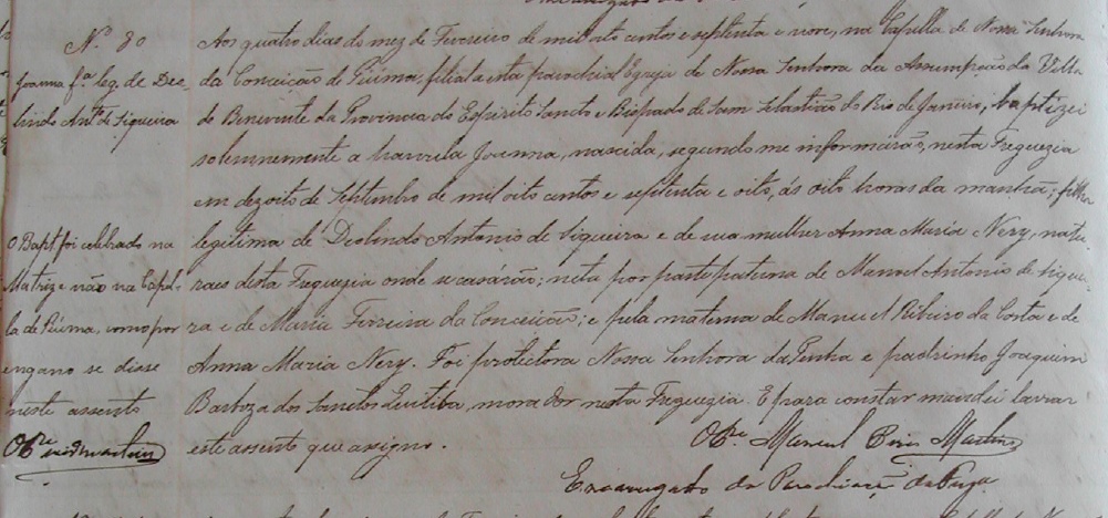 - Joanna, nascida no dia 18/09/1878, batizada no dia 04/02/1879, na Capela de Nossa Senhora da Conceição de Piuma-ES
