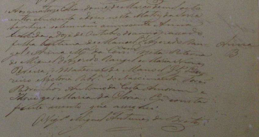 Anna, nascida no dia 12/10/1851, batizada no dia 14/03/1852, na Matriz da Serra-ES