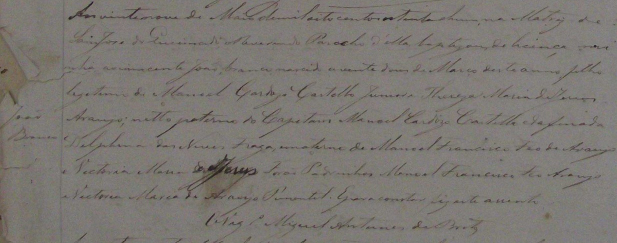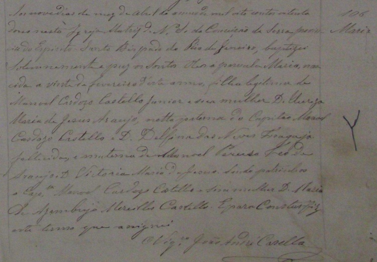 Padrinhos: Capitão Manoel Cardozo Castello e sua mulher Maria Marcia de Azambuja Meirelles