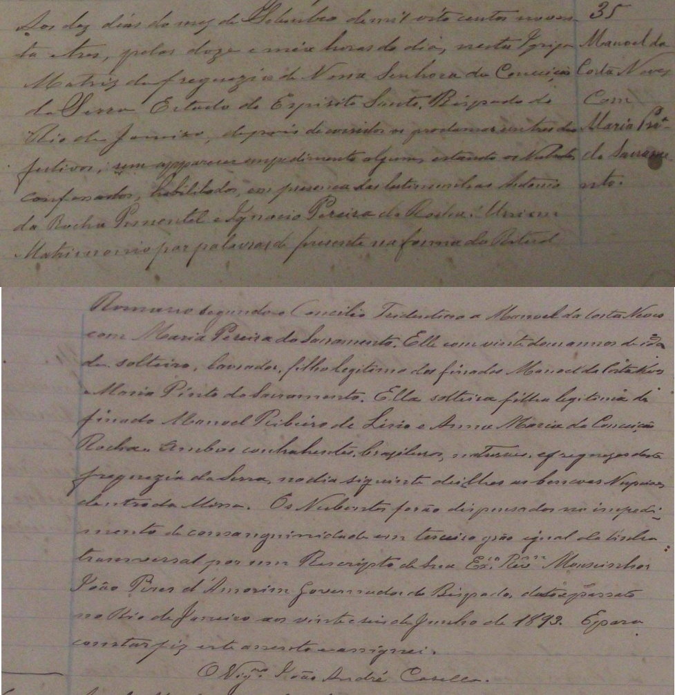 Casaram-se no dia 10/09/1893, pela 10 e meia horas do dia, na Igreja matriz da Freguezia de Nossa Senhora da Conceição da Serra-ES