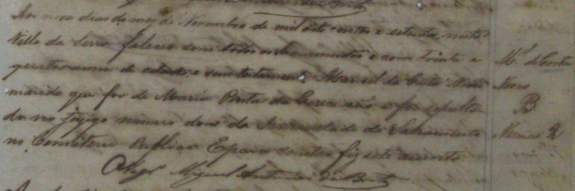 Manoel da Costa Neves faleceu no dia 09/11/1870, na Villa da serra-ES, con 34 anos de idade
