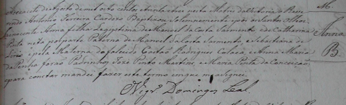 Pais: Castão Rodrigues Collaça e Anna Maria da Penha