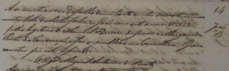- João, falecido no dia 29/07/1865, na Vila da Serra-ES, com 7 anos de idade