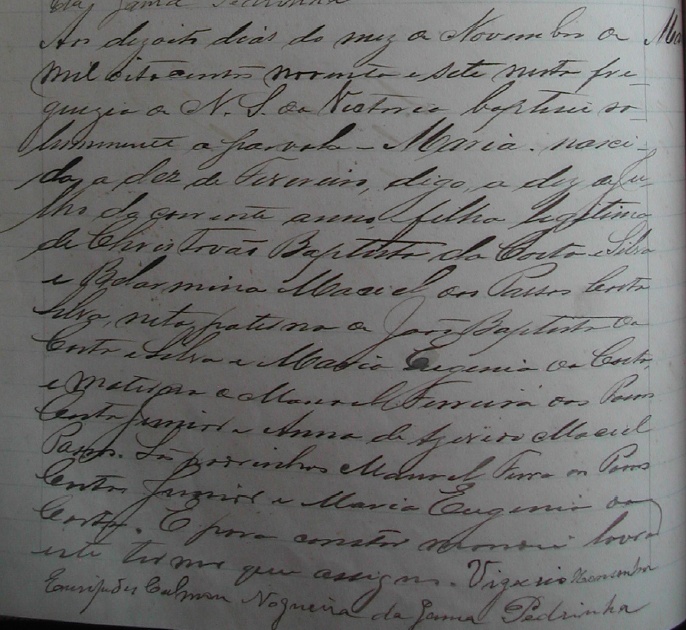 - Benigno, nascido no dia 03/07/1860, batizado no dia 17/02/1861, na Matriz de Vitoria-ES
