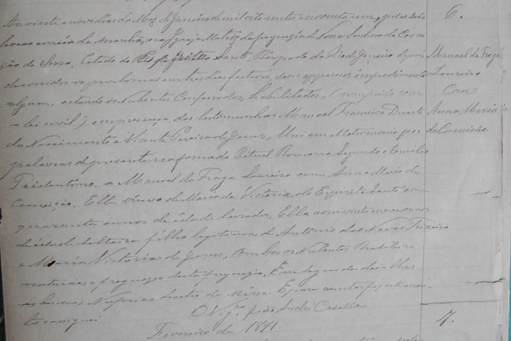 Casaram-se no dia 29/01/1891, pelas seis horas da manhã, na Igreja Matriz da Freguezia de Nossa Senhora da Conceição da Serra-ES