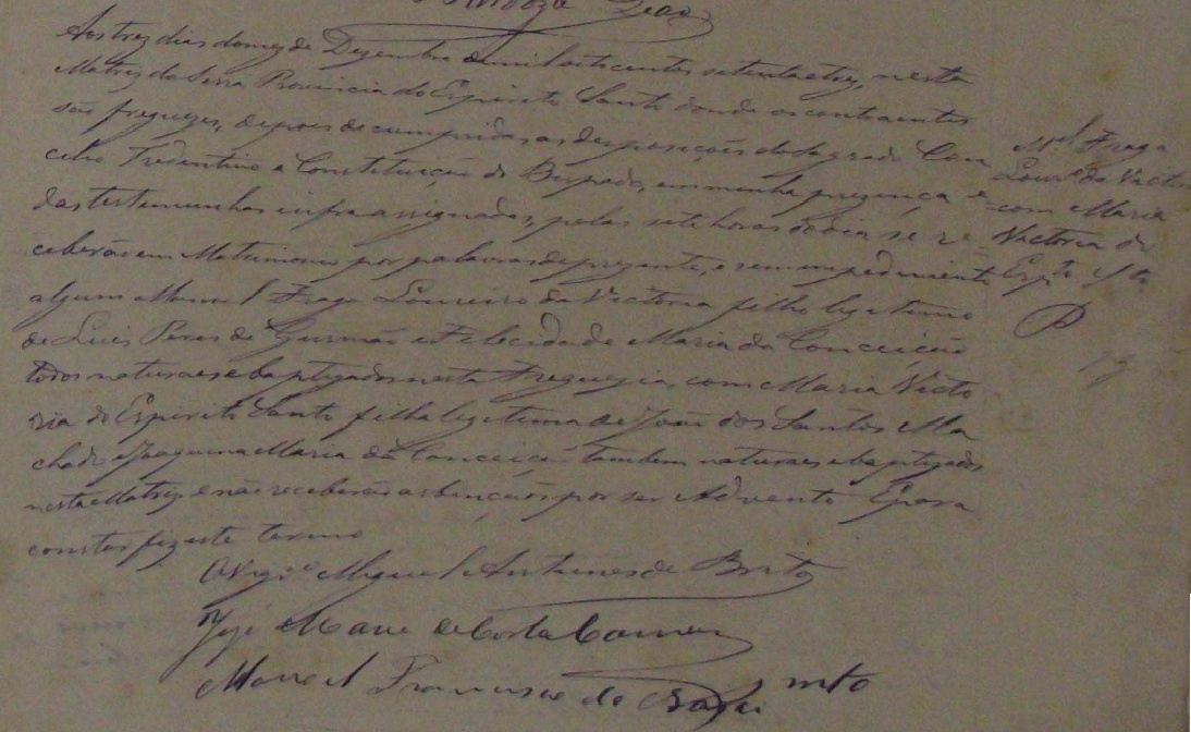 Casaram-se no dia 03/12/1873, na Matriz da Serra-ES, pelas 7 horas do dia