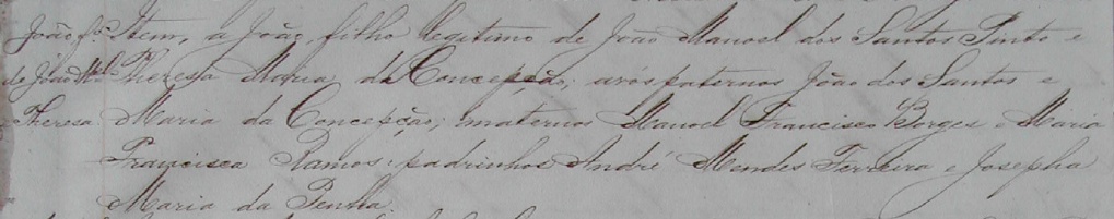 - Theresa Maria da Concepção c.c. João Manoel dos Santos Pinto, filho de João dos Santos e Maria da Conceição