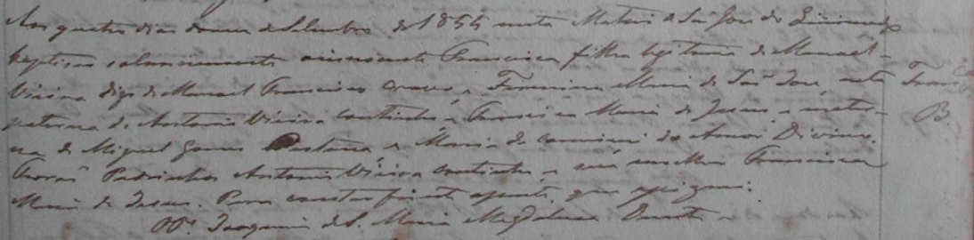 - Francisca, batizada no dia 04/09/1855, na matriz de São Jose do Queimado-ES