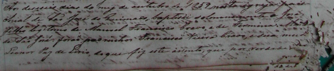 - Francisco, nascido no dia 25/04/1853, batizado no dia 24/06/1853, na Matriz de São Jose de Queimado-ES