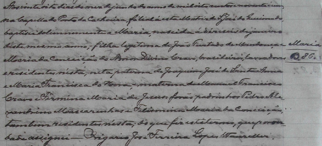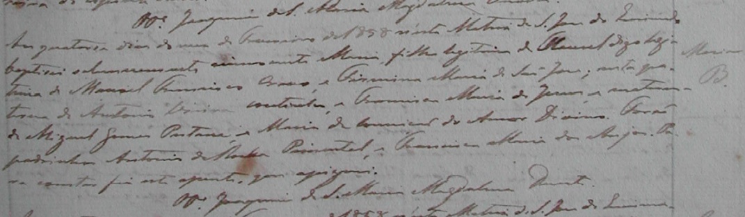 - Maria, batizada no dia 14/02/1858, na Matriz de São Jose do Queimado-ES