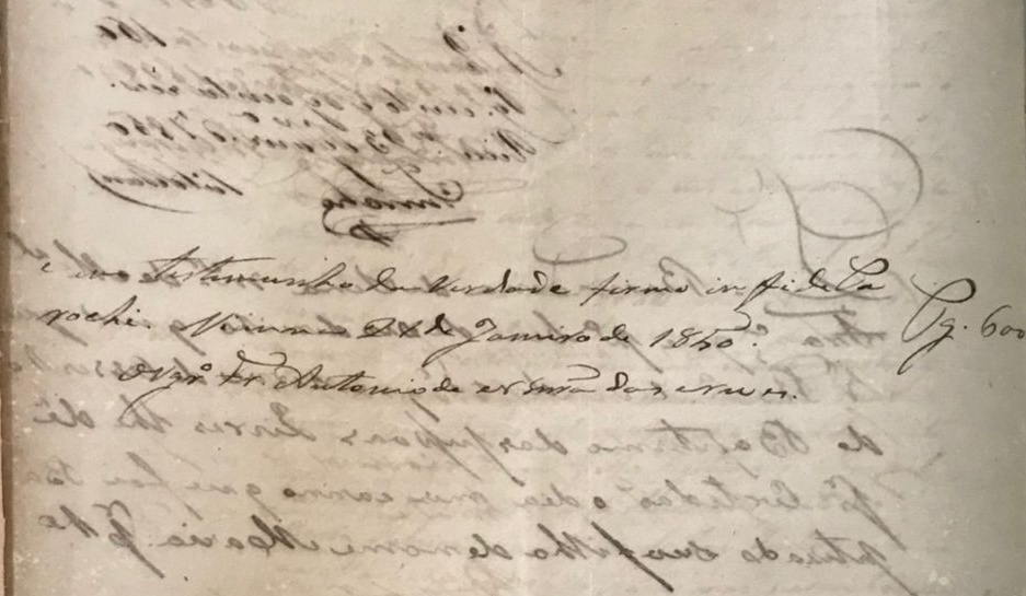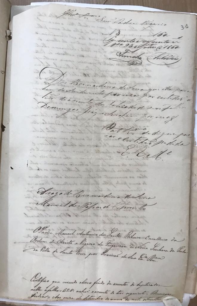 Testemunhas: Sebastião Alves de Souza, a rogo de Bernardino de Sena Teixeira e Antonio de Freitas Lyra
