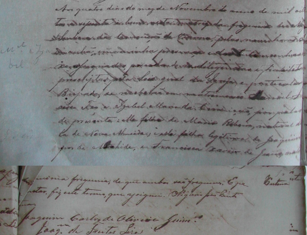 Casaram-se no dia 04/11/1861, na Freguezia de Nossa Senhora da Conceição de Viana-ES, pelas 9 horas da manhã