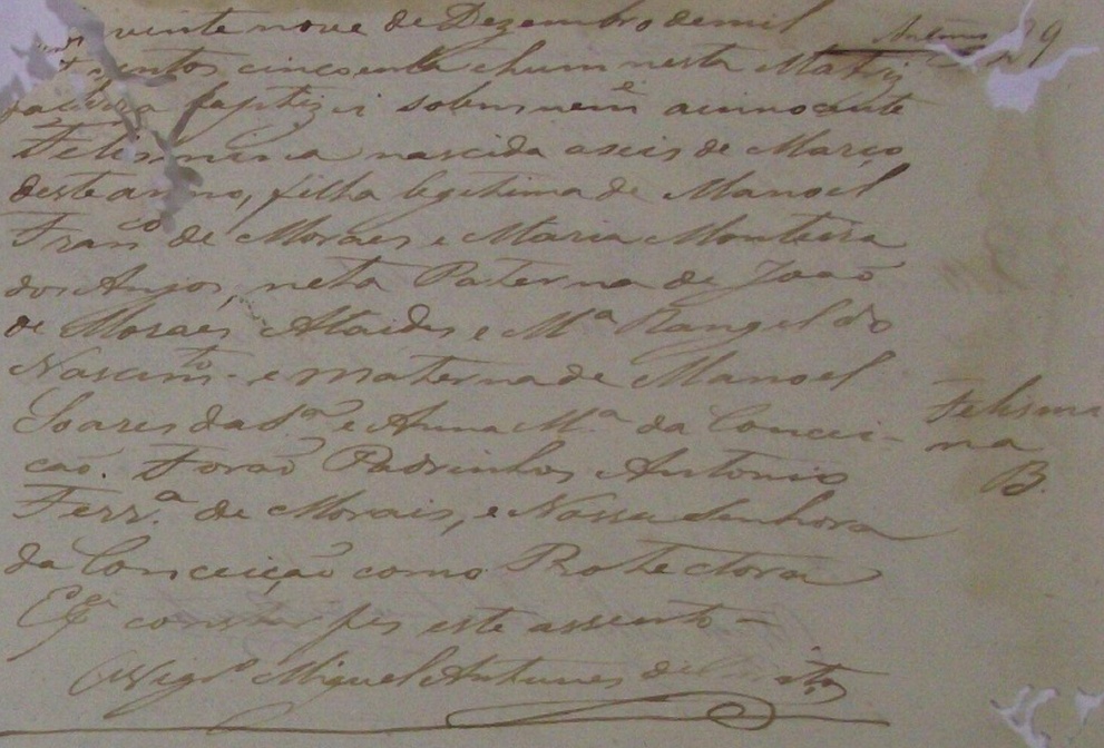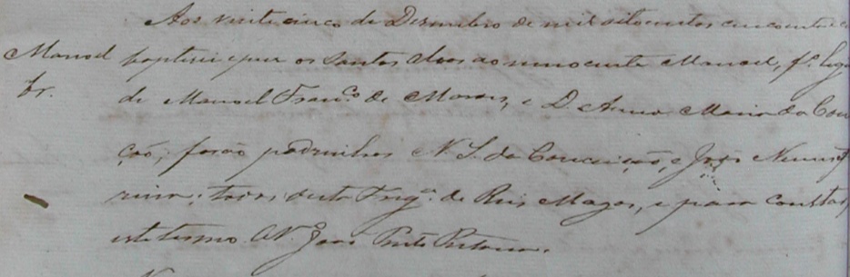 Padrinhos: Manoel Francisco de Moraes e Anna Maria da Conceição