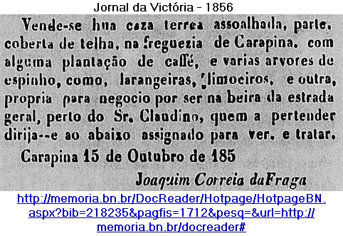 - Em 1854 - Proprietário em Carapina-ES