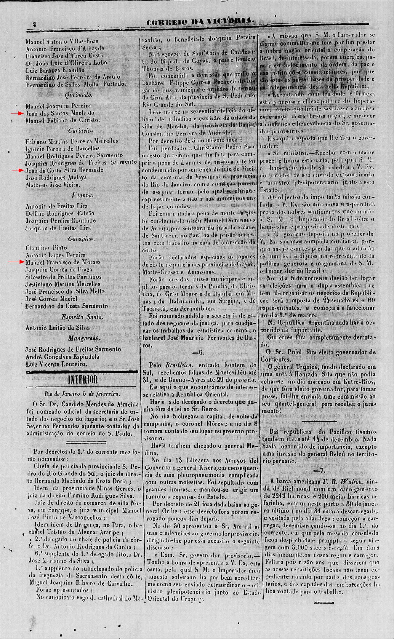 1854 - Manoel Francisco Moraes era proprietário em Carapina-ES