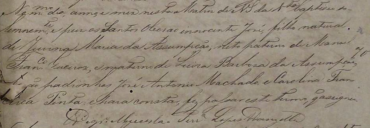 - Manoel, batizado no dia 01/07/1838, na igreja Matriz de Nossa Senhora da Vitoria-ES