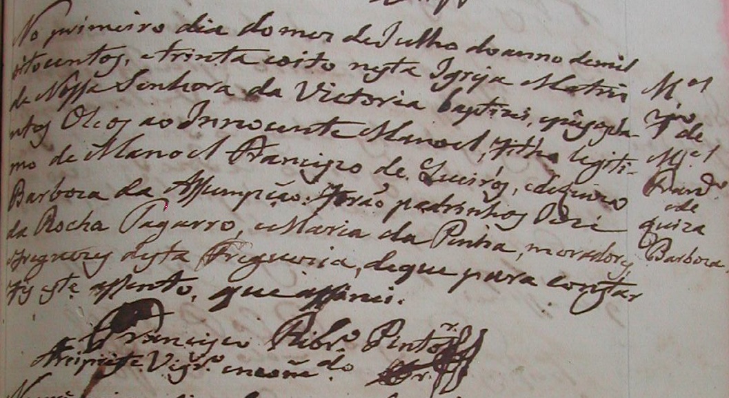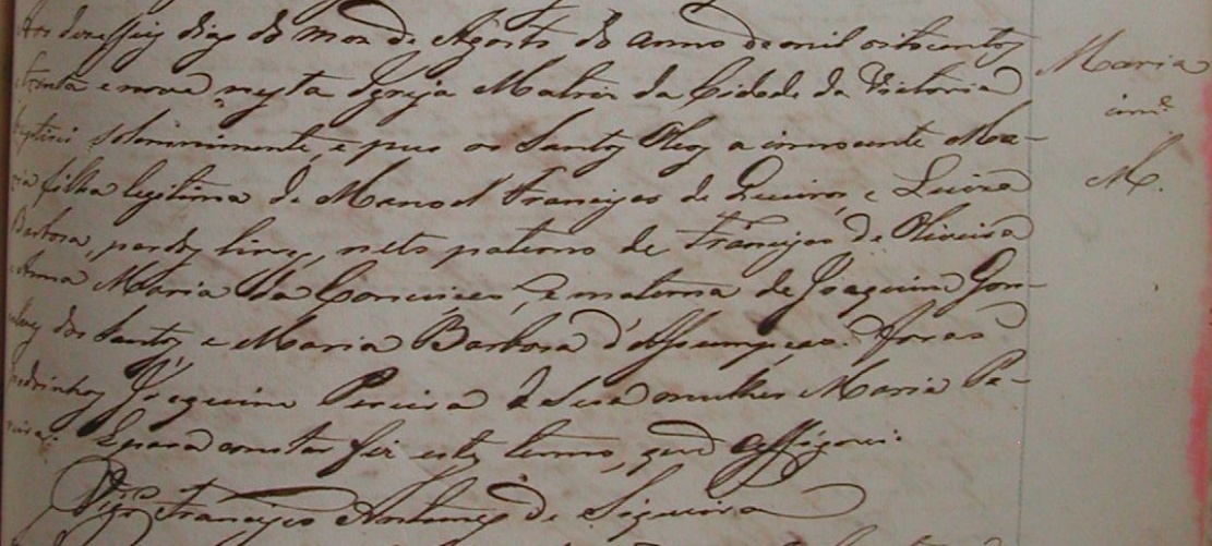 - Maria, batizada no dia 16/08/1839, na Igreja Matriz da Cidade de Vitoria-ES