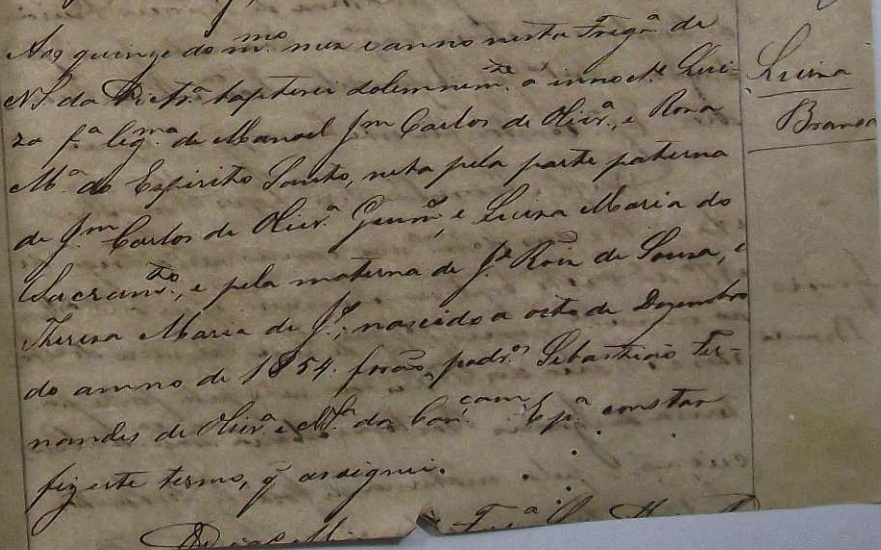 Thereza, batizada no mes de Agosto/1851, na Matriz de Vitoria-ES