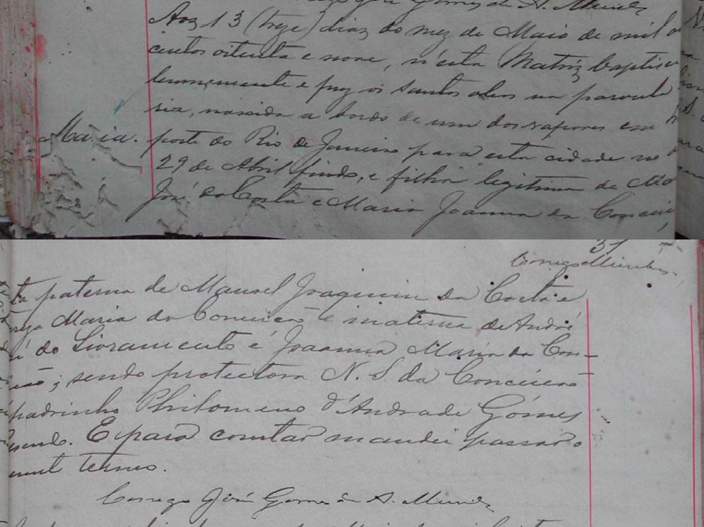 - Manoel, batizado no dia 06/04/1845, na Matriz de Vitoria-ES