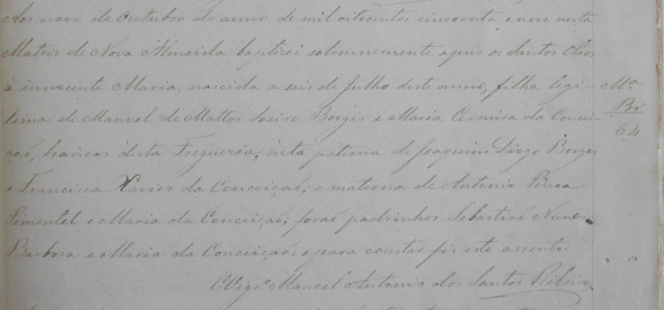 Padrinhos: Sebastião Nunes Barboza e Maria da Conceição