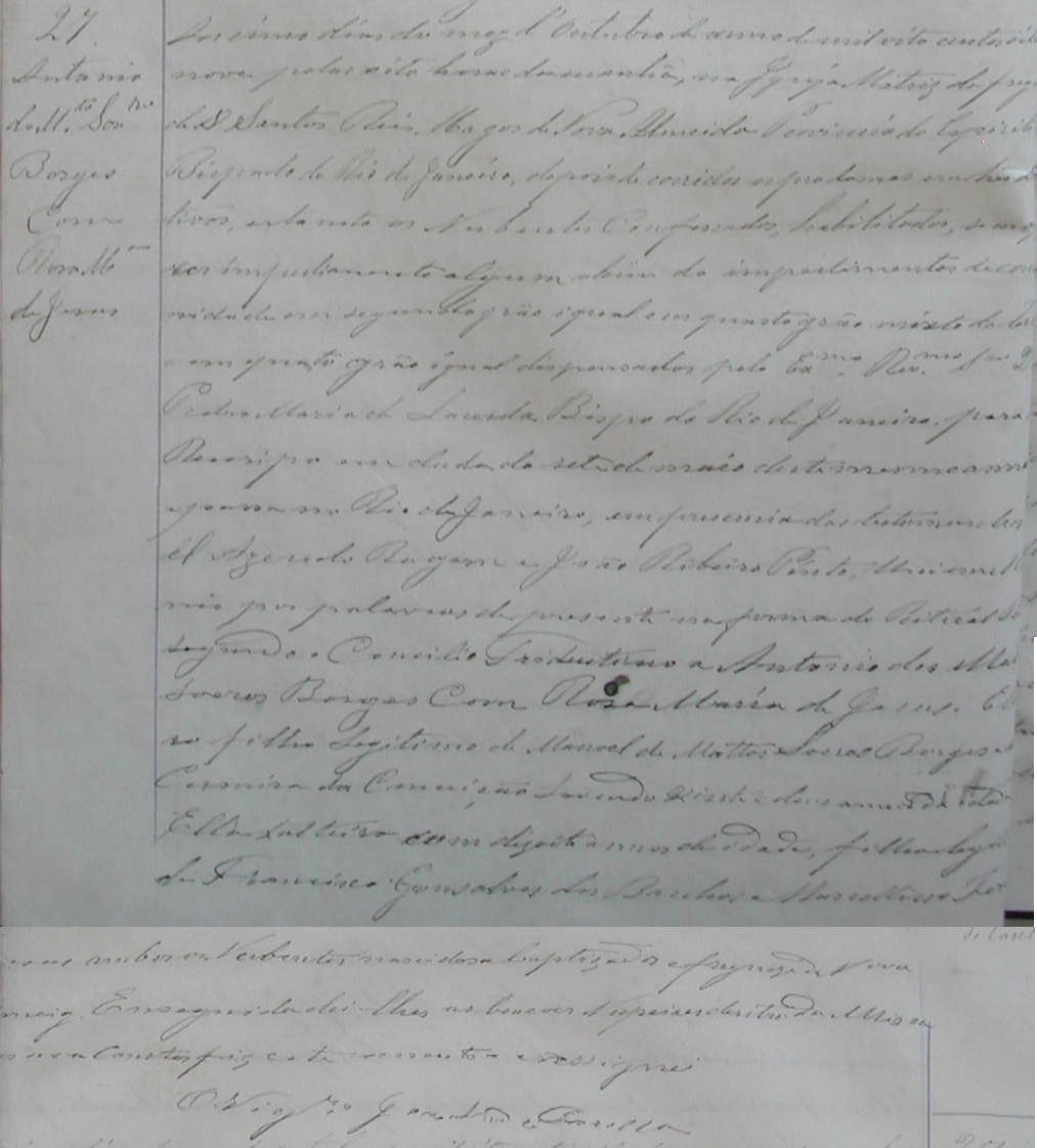 Antonio de Mattos Soeiro Borges c.c. Rosa Maria de Jesus (primos-irmãos), filha de Filha de Francisco Gonçalves dos Banhos e Marcelina