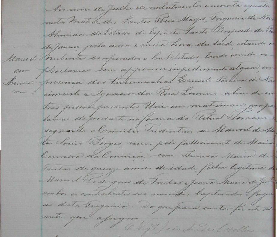 Casaram-se no dia 29/12/1894, em Nova Almeida - ES - Ele com 26 anos de idade e Ela com 15 anos de idade