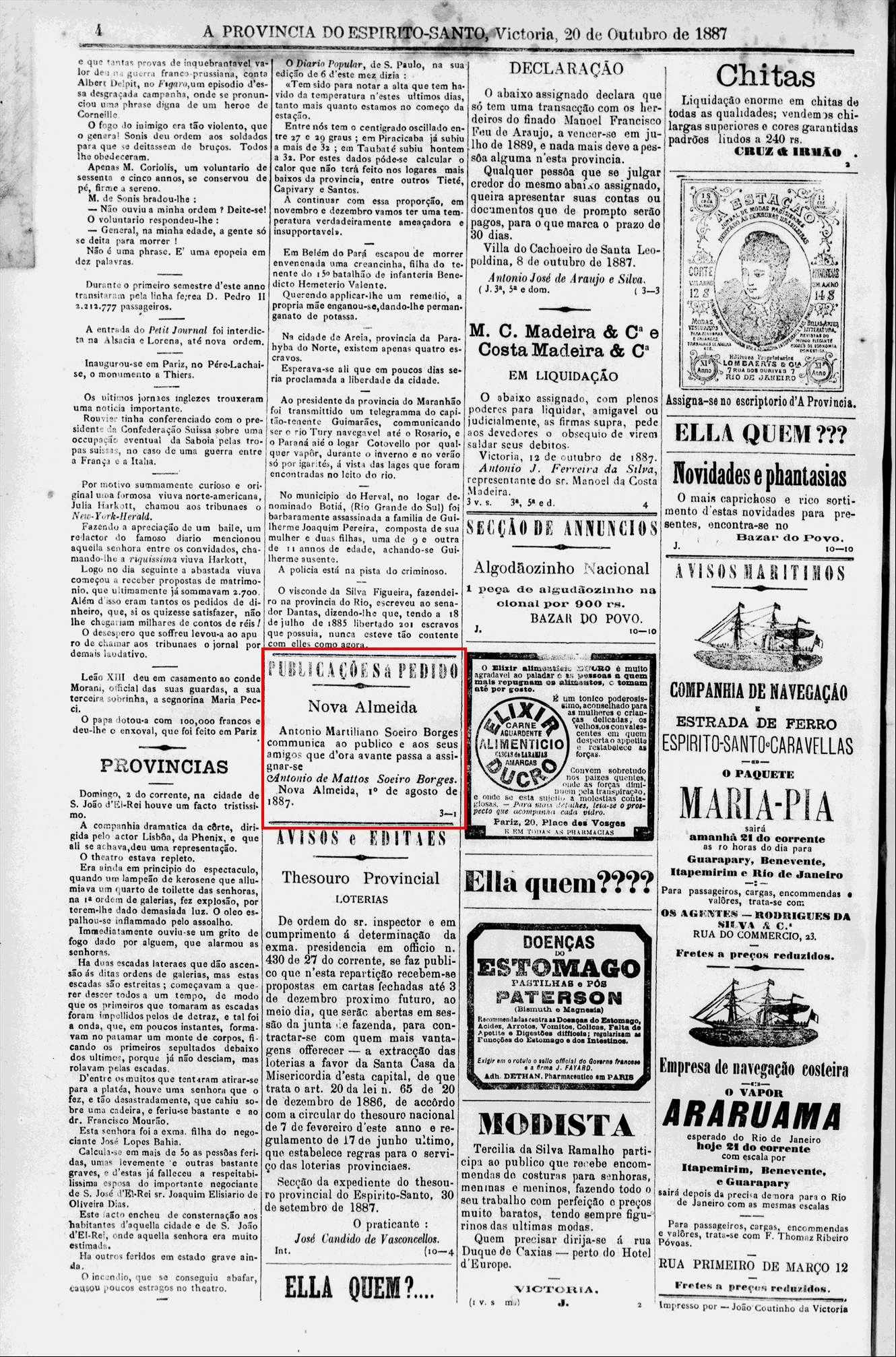 Em 1887 Antonio Martiliano Soeiro Borge passa a assinar Antonio de Mattos Soeiro Borges, conforme jornal abaixo