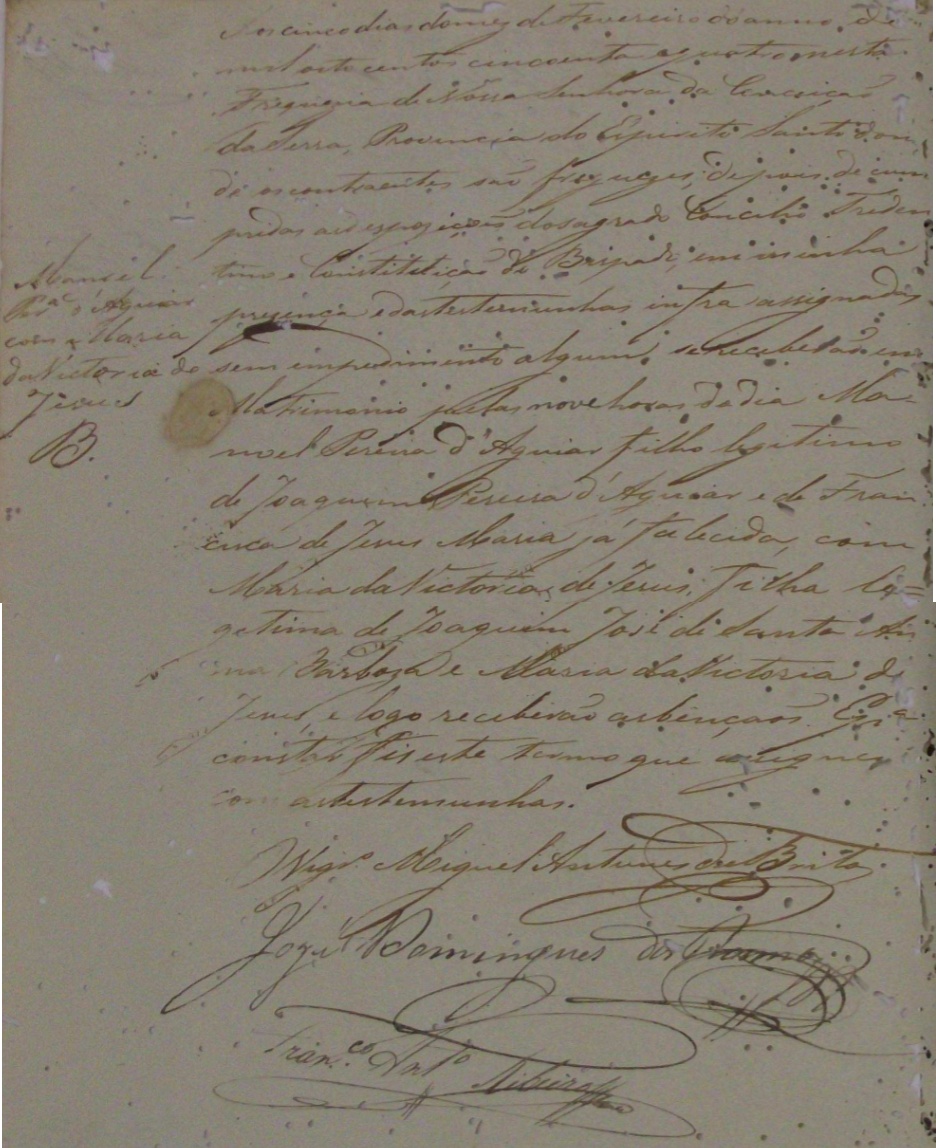 - Maria Leopoldina de Aguiar c.c. Manoel Francisco de Azeredo, filho de Manoel Francisco de Azeredo e Victoria Maria dos Santos