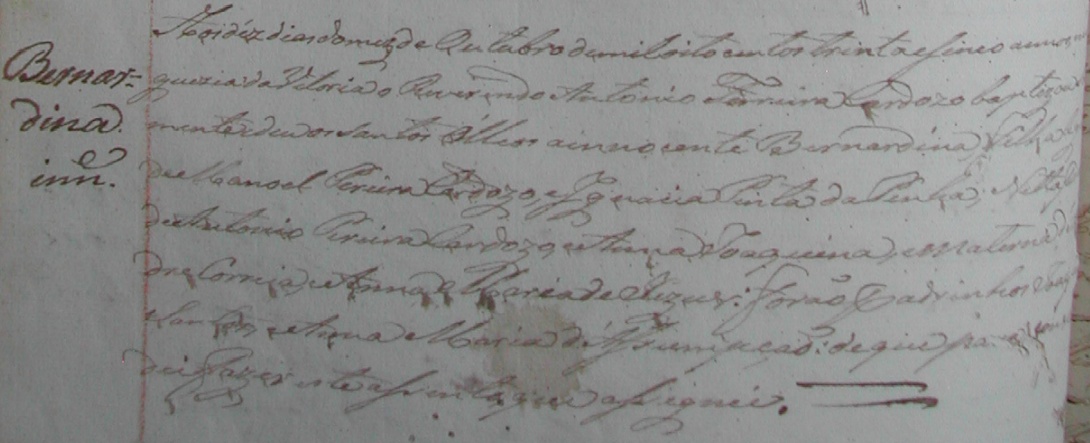 - Bernardina, batizada no dia 10/10/1835, na Matriz de Vitoria-ES