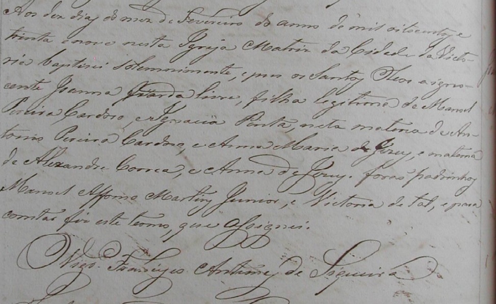 - Joanna (Parda livre), batizada no dia 10/02/1839, na Matriz de Vitoria-ES