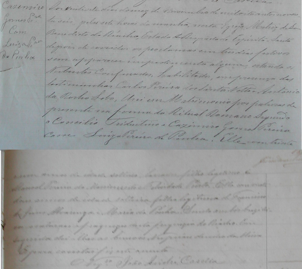Casaram-se no dia 22/11/1896, pelas 7 horas da manhã na Igreja Matriz da Freguezia de São Benedito do Riacho-ES