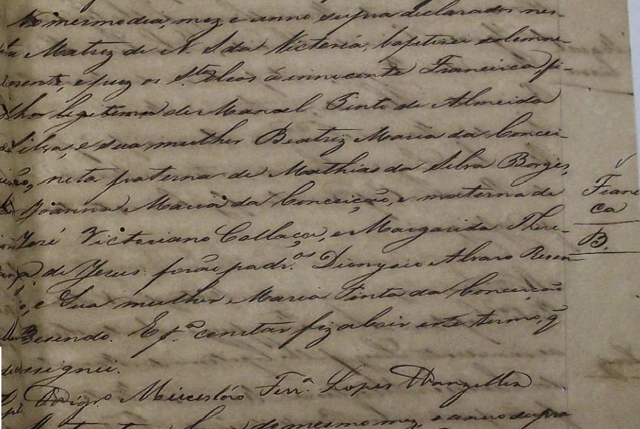 - Francisco, batizado no dia 30/11/1856, em Cariacica-ES