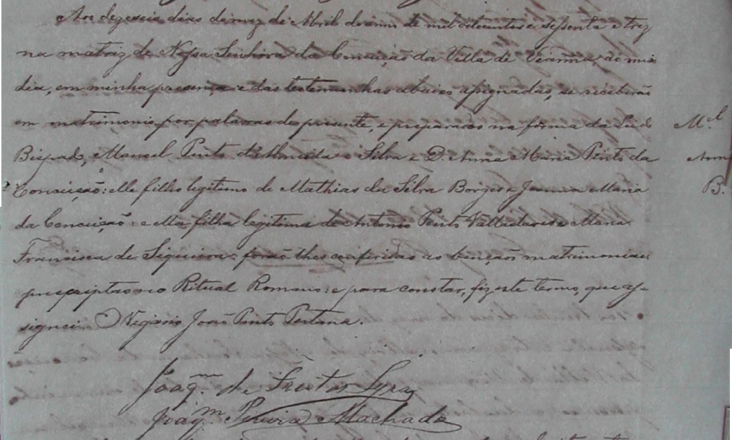 Casaram-se no dia 16/04/1863, na Matriz de Nossa Senhora da Conceição da Vila de Vianna-ES