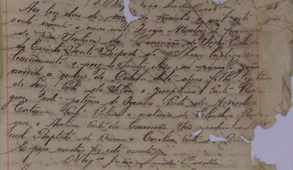 Padrinhos: Manoel Batista do Rozario e Carolina Pinto do Rozario