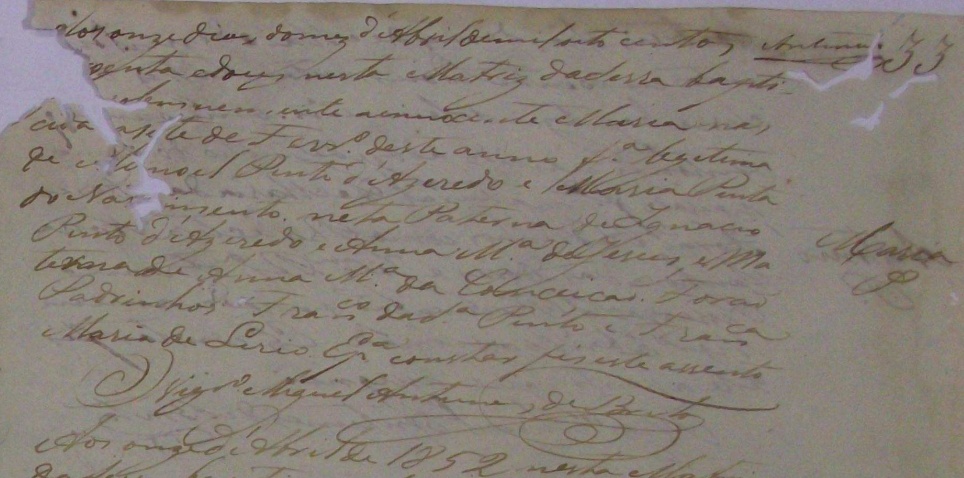 Padrinhos: Francisco da Silva Pinto e Francisca Maria de Lirio