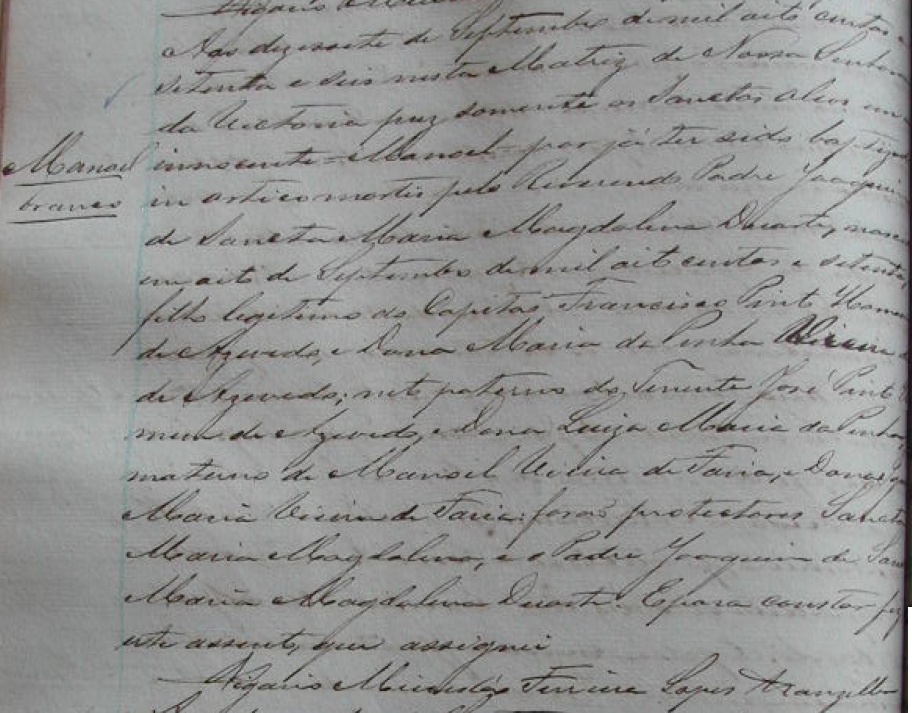 - Manoel, batizado no dia 17/09/1876, na Matriz de Nossa Senhora da Vitoria-ES