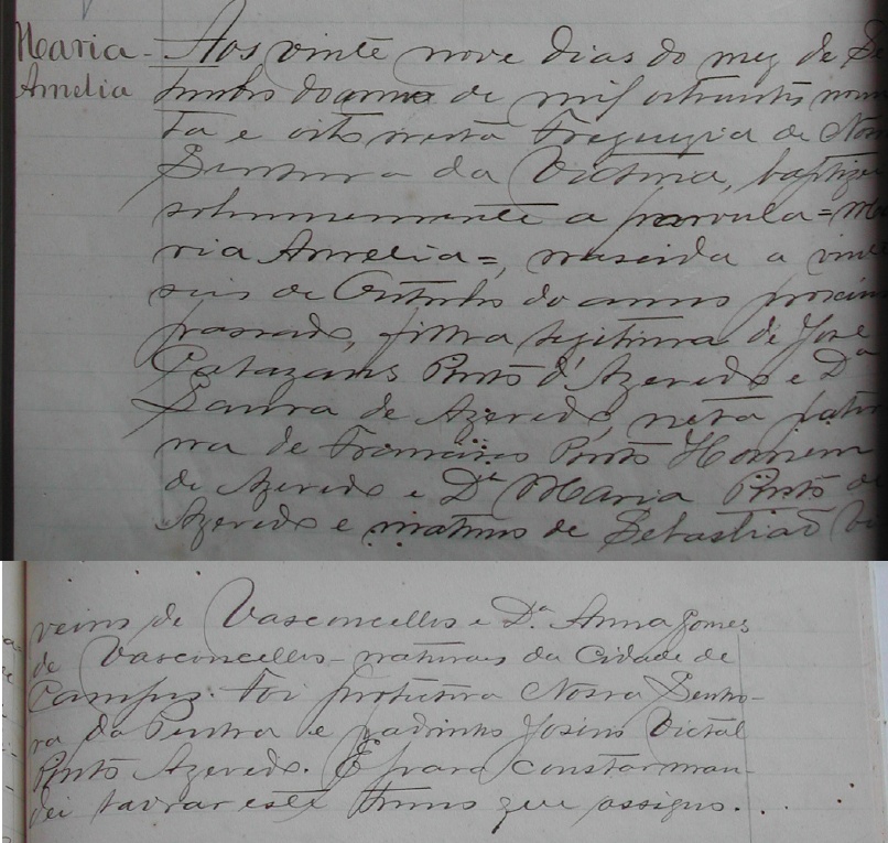- Maria Amelia, nascida no dia 26/10/1897, batizada no dia 29/09/1898, na Freguezia de Nossa Senhora da Vitoria-ES