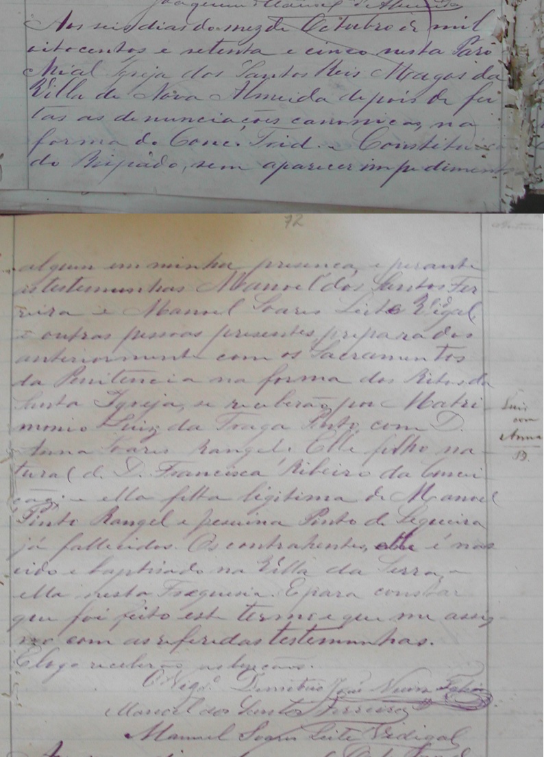Manoel Pinto Soares Rangel c.c. Maria Linna de Moraes, filha de Manoel Ferreira de Moraes e Francisca das Neves Pinto