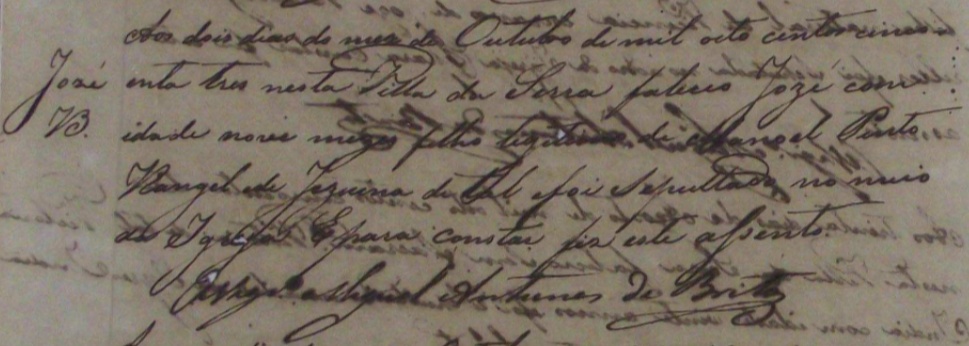 - Jose, falecido no dia 02/10/1853, na Vila da Serra-ES, com idade de 9 meses, sepultado no meio da igreja
