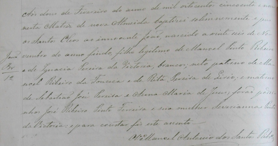 Testemunhas: Jose Ribeiro Pinto Ferreira e sua mulher Severianna Pinto da Victoria
